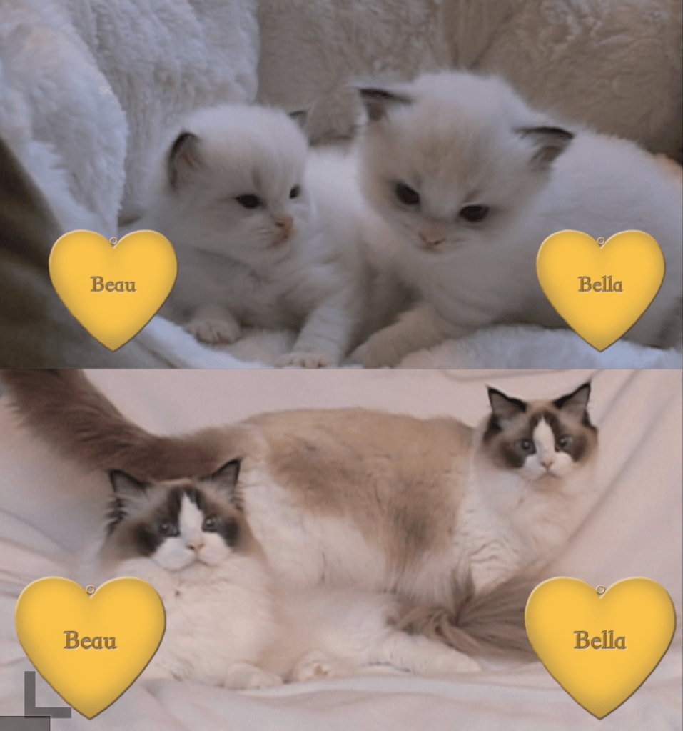 Beau is Ginger’s baby boy and “twins” with his sister Bella. He is the older brother, born first and is a seal bi-color ragdoll with very vivid blue eyes!